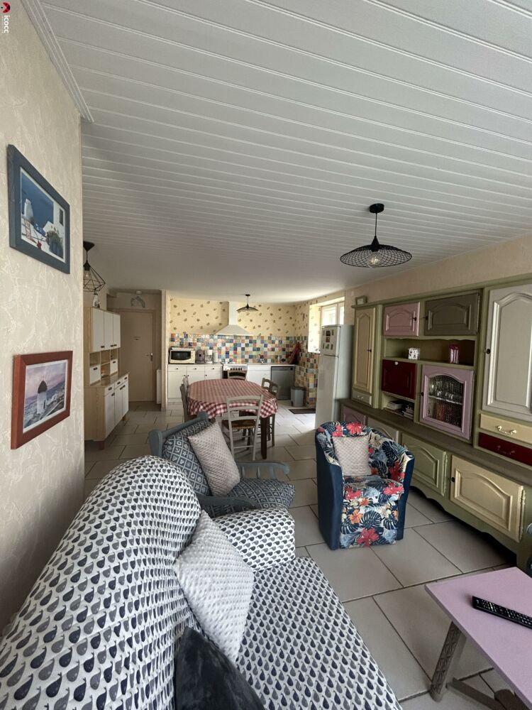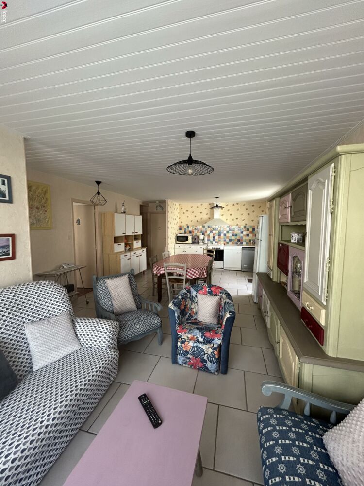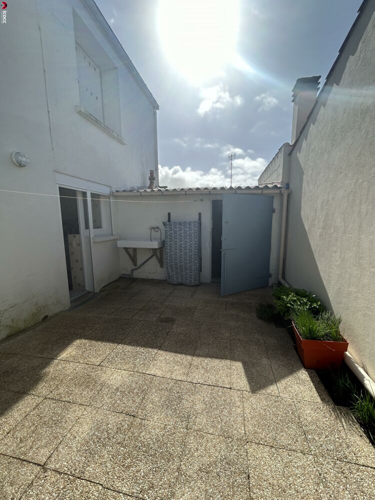 Centre bourg de L'Aiguillon sur mer, maison de 74 m2 habitables comprenant séjour/cuisine, deux grandes chambres avec placards, salle d'eau, wc. Cellier. Cour. Ce bien immobilier dépend d'une copropriété de 3 lots. Pas de syndic.