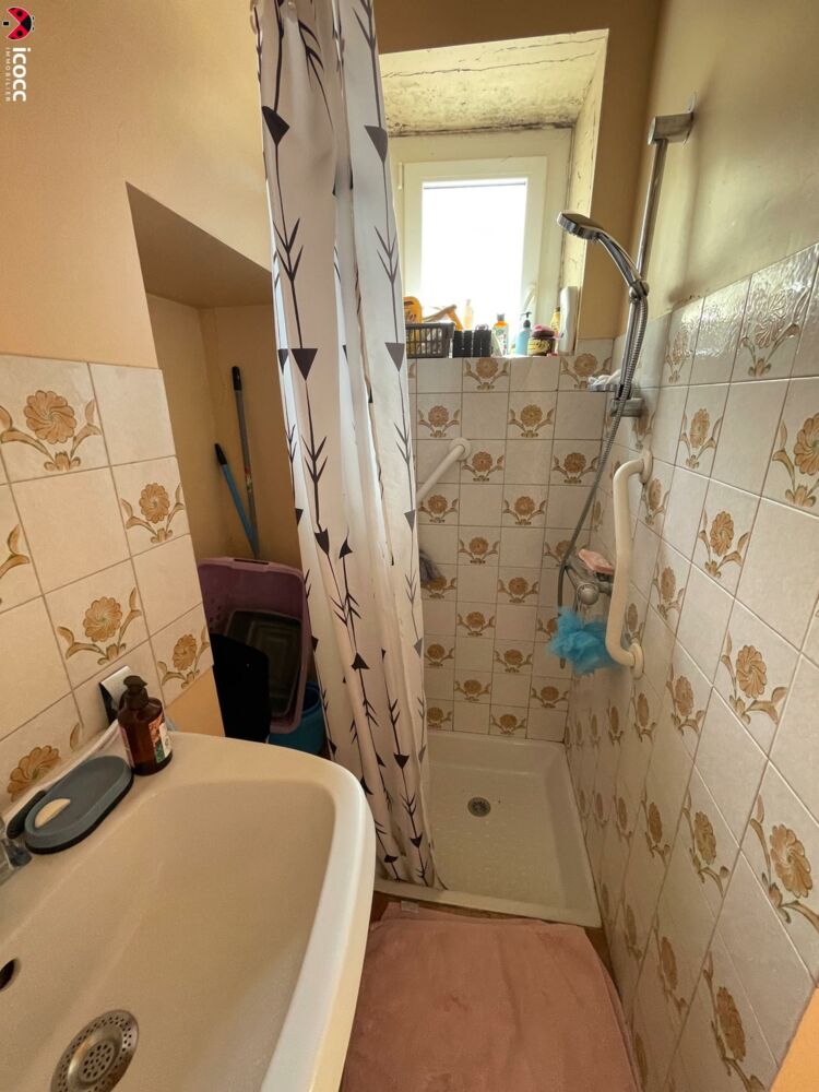 Maison de bourg à étage de 61,50 m2 habitables comprenant une cuisine, une pièce de vie, deux chambres, une salle d'eau, un wc. Jardinet.