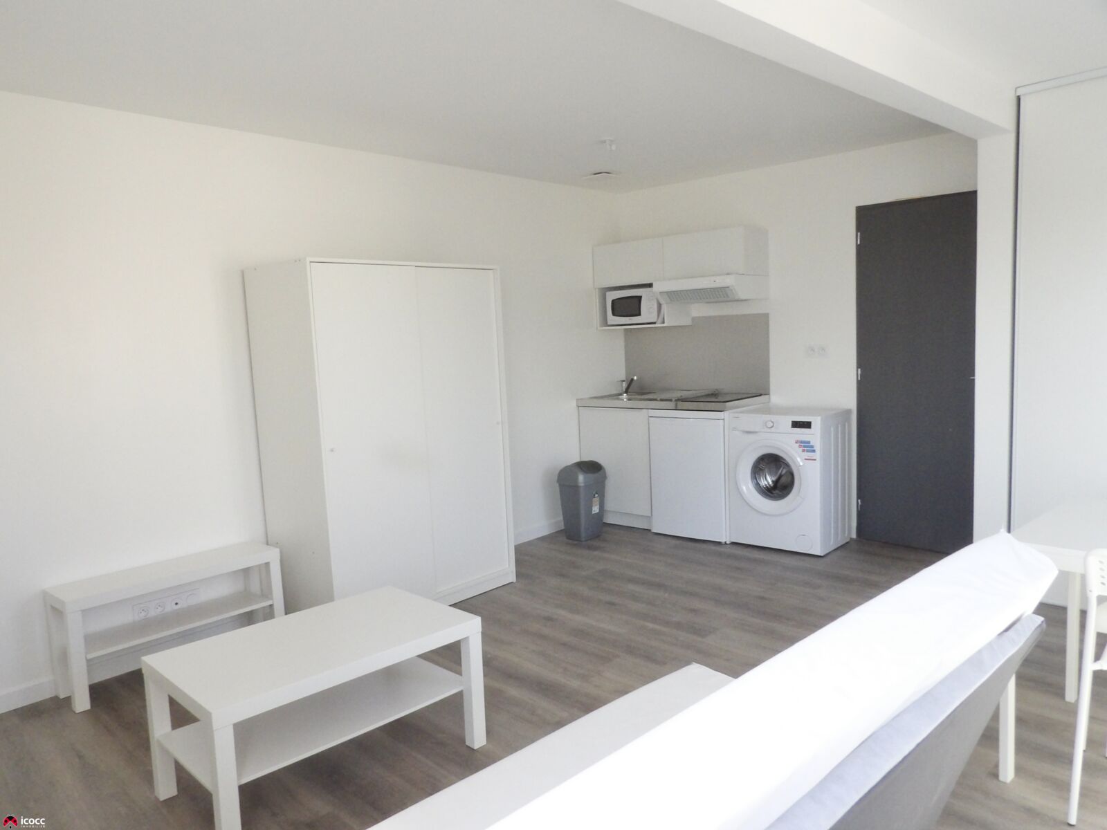 Studio au 1er étage de 28,60 m2 entièrement meublé comprenant une pièce de vie avec cuisine américaine et une salle d'eau avec wc. Chauffage électrique, ouvertures en PVC et double vitrage. Disponible le 18 Septembre 2023.