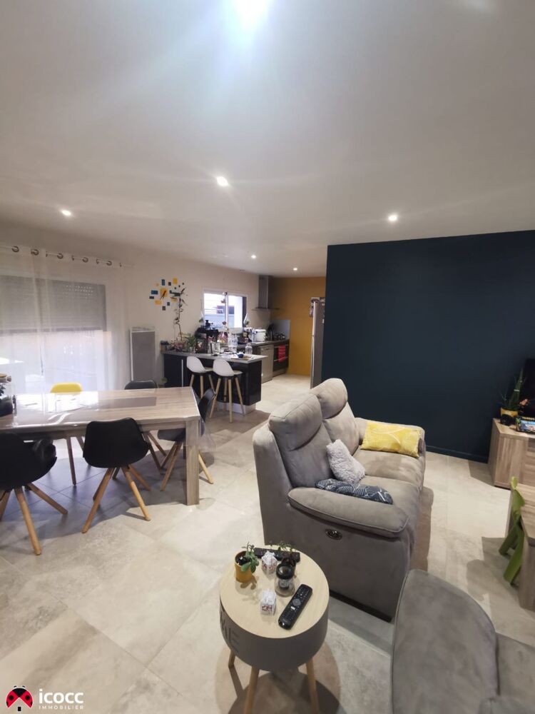 Venez découvrir cette maison récente de plain pied construite en 2011-2012 située au calme dans un lotissement. Ses 92 m2 habitables comprennent une entrée avec placard, une pièce de vie d'environ 50 m2 avec cuisine américaine aménagée équipée, un dégagement, trois chambres avec placards, une salle de bains avec baignoire d'angle et douche à l'italienne, un WC. Attenant à la cuisine, on trouve un garage d'environ 20 m2 avec espace cellier. En extérieur, la maison bénéficie d'une terrasse en bois avec tonnelle exposée Sud/Ouest. Une piscine chauffée semi-enterrée avec terrasse vient parfaire cet ensemble. En façade, l'allée et l'espace parking sont goudronnés. Pelouse et jardin potager complètent l'aménagement extérieur. Le terrain de 825 m2 est entièrement clos avec portail électrique coulissant pour l'entrée.Vous apprécierez tout particulièrement la luminosité de la maison grâce à toutes ses portes vitrées et baie vitrée. Vous n'avez plus qu'à poser vos valises. N'hésitez plus.