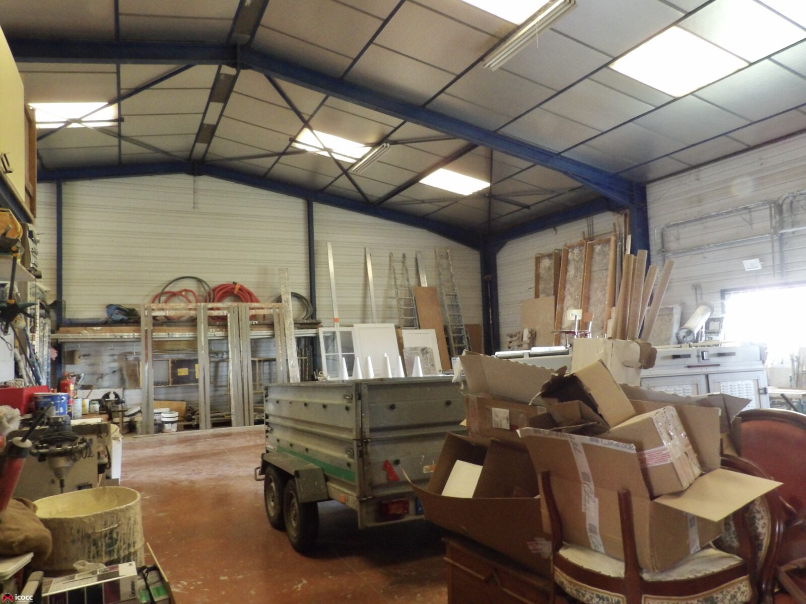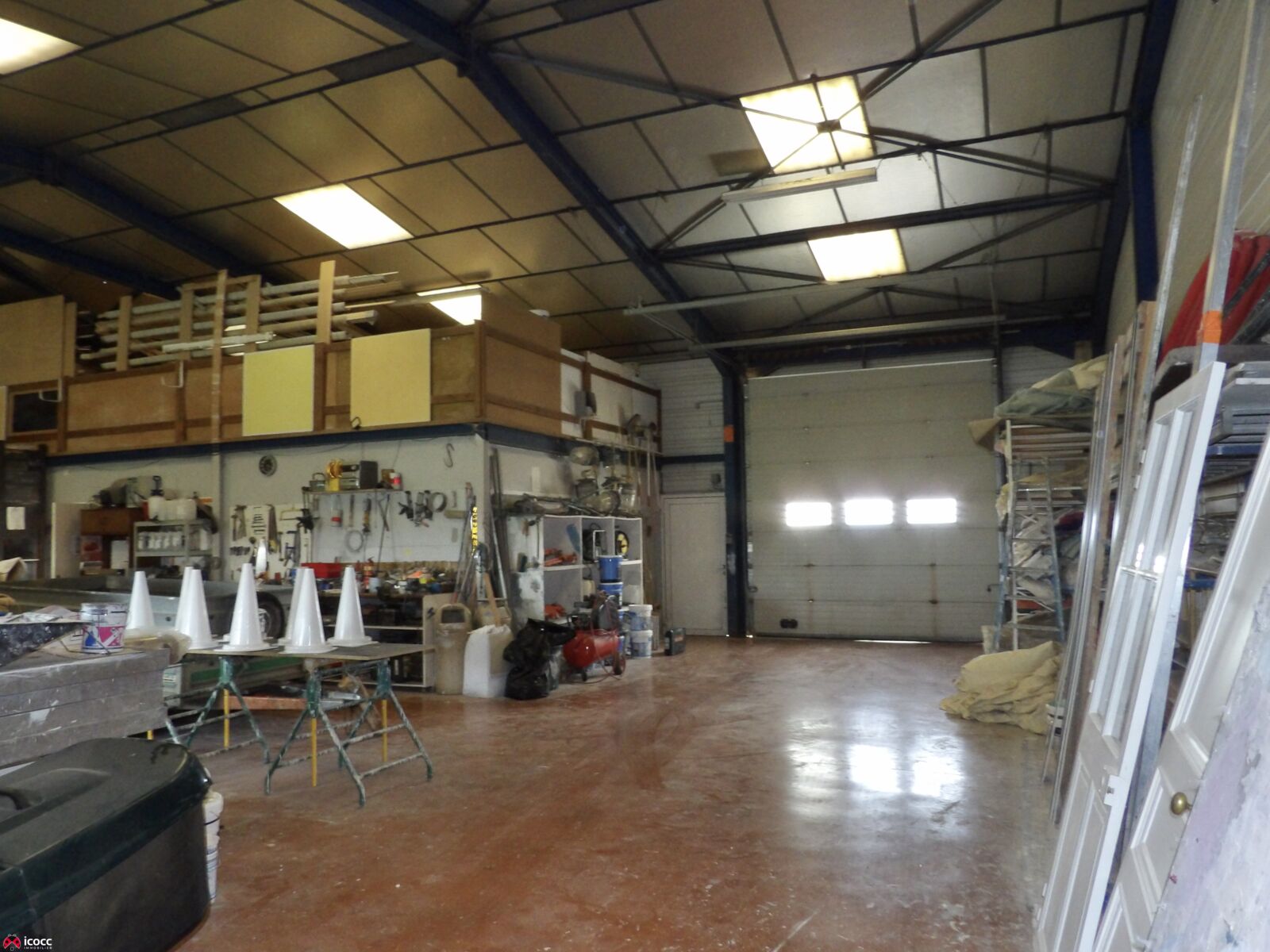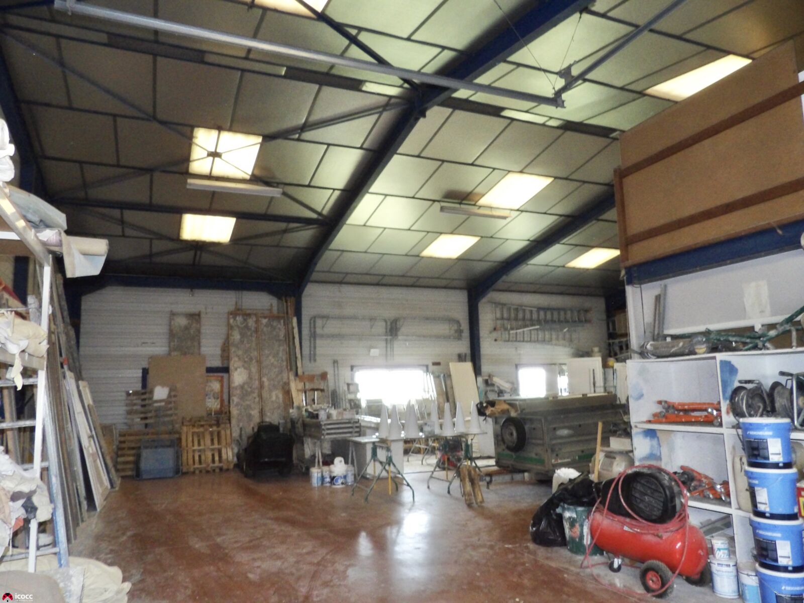Le bâtiment est constitué d'un bardage double peau avec charpente métallique et toiture isolée. Une porte sectionnelle motorisée permet l'accès à l'entrepôt.