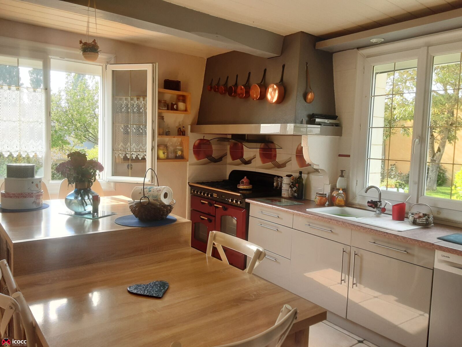 Proche de toutes les commodités (commerces, restaurant, pharmacie...), vous apprécierez cette charmante maison de plain-pied baignée de lumière. Ses 210 m2 habitables comprennent une belle pièce de vie dotée d'une cheminée insert, une cuisine aménagée avec son ilot central, son piano de cuisson et sa cuisinière à bois, une arrière-cuisine, trois chambres, un bureau, une salle de bains, une salle d'eau, un wc. La maison bénéficie d'un agrandissement grâce à deux vérandas communiquantes orientées Ouest. Différentes dépendances viennent compléter cette propriété : garage, carport pour camping-car, grand atelier, pièce d'été avec cheminée en pierre. Le terrain, d'une superficie de 2589 m2, dispose d'un jardin arboré et aménagé avec massifs, bassin, allées en pavés... sans vis à vis, clos de murs avec portail électrique.