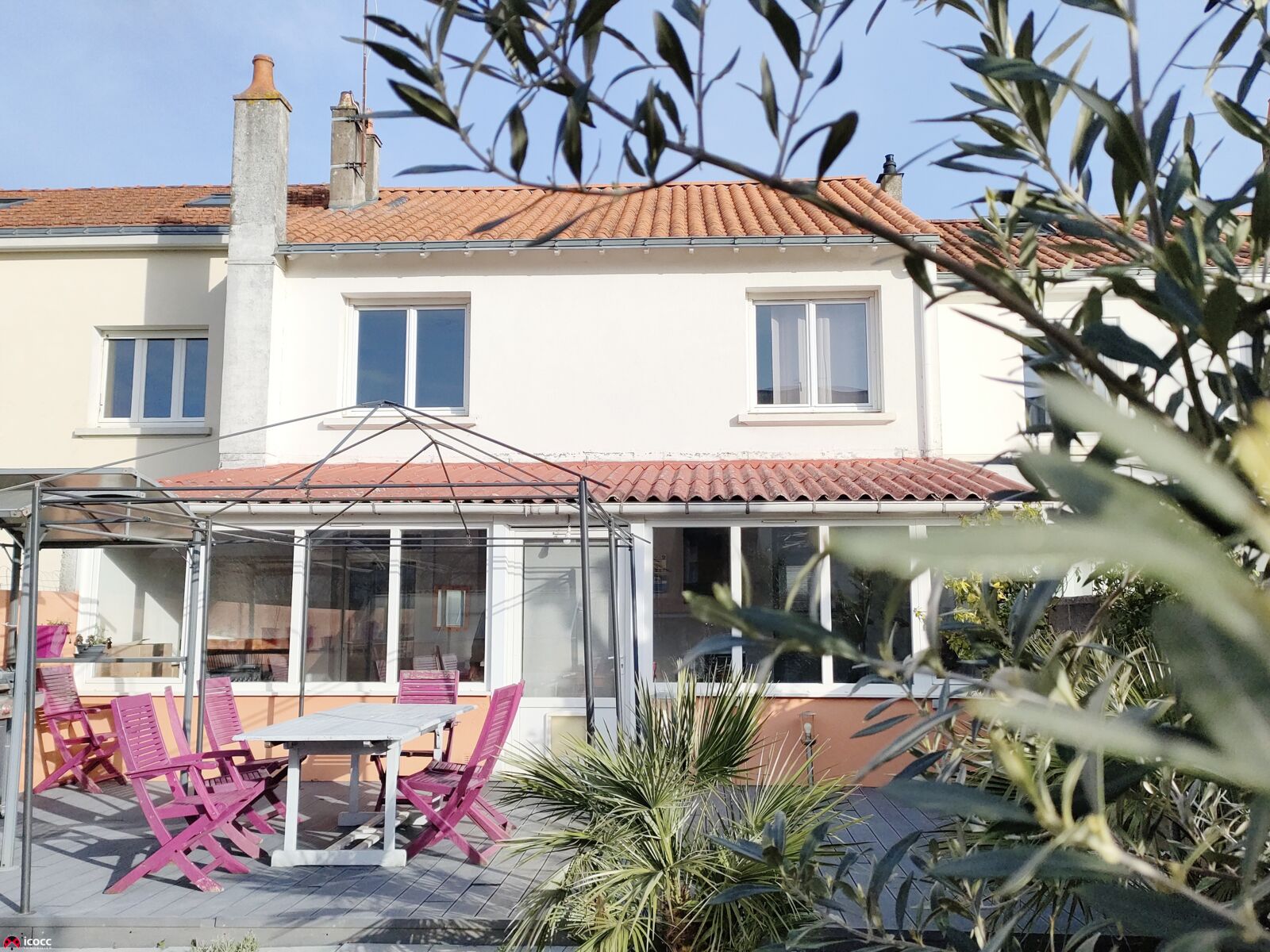 Votre agence ICOCC vous présente, au coeur de la ville de La Roche sur yon, à proximité du centre commercial Les Flaneries, à 15 mn du centre ville à pied, cette maison exposée plein sud, d'une surface de 100 m² habitables très lumineuse comprenant une pièce de vie (salon-séjour-cuisine équipée et aménagée de 2019) de 38m², une salle d'eau refaite et un WC suspendu. Vous trouverez également une grande véranda de 22m² avec cheminée et avec vue sur le terrain exposé plein sud d'environ 100m² avec atelier de 23m² et une serre.