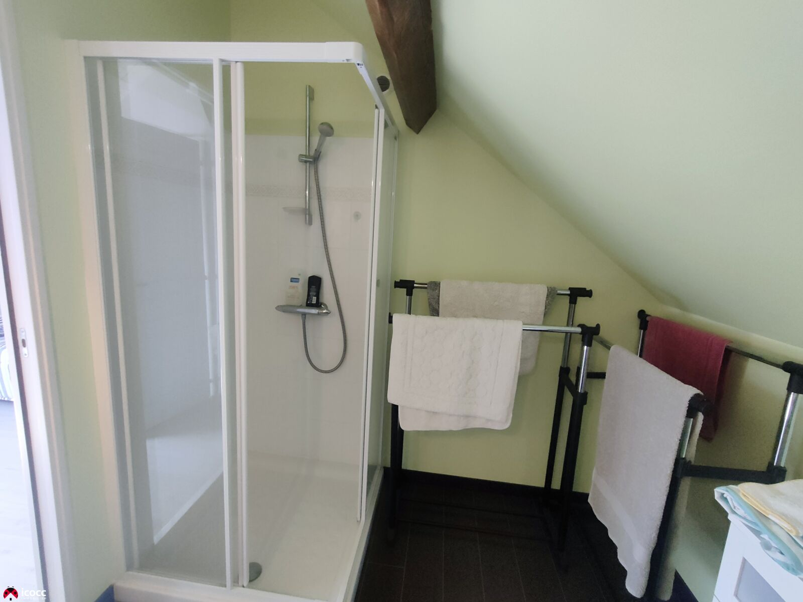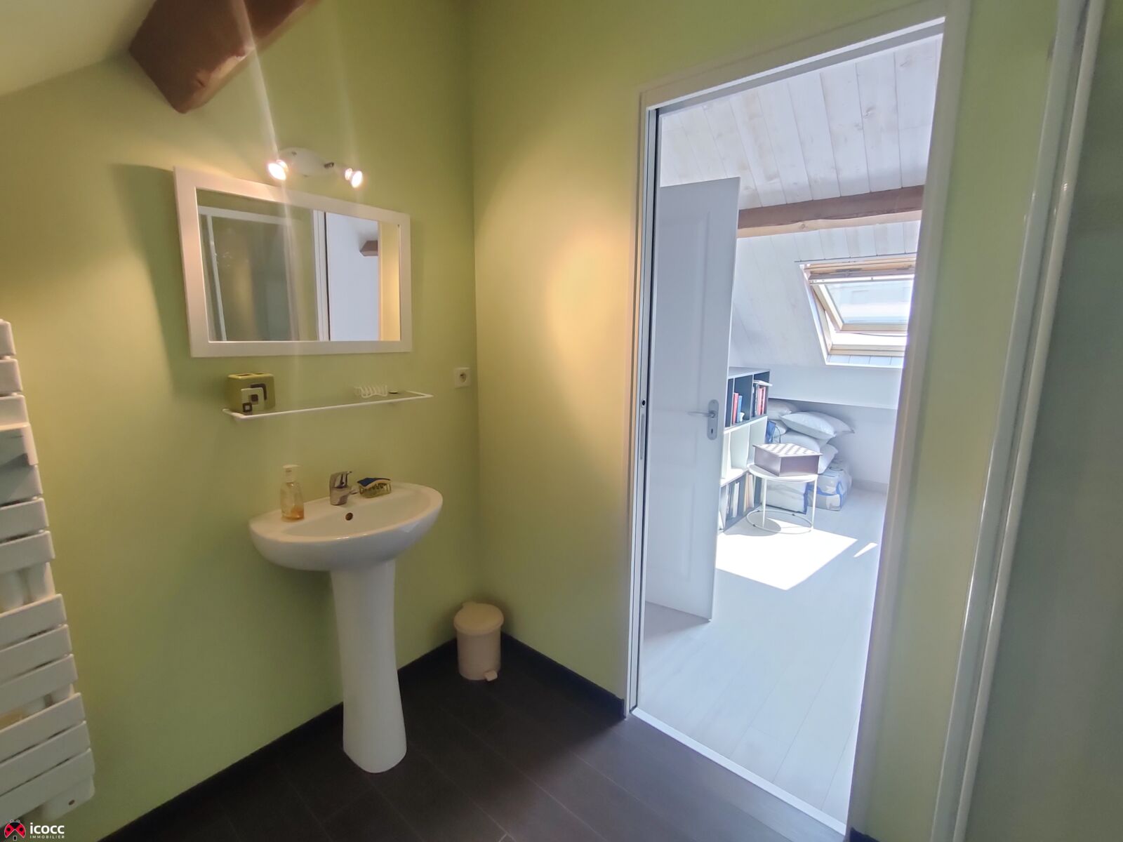 A l'étage, un bureau (pouvant recevoir une chambre supplémentaire), une chambre de 12m² ainsi qu'une salle d'eau avec WC.