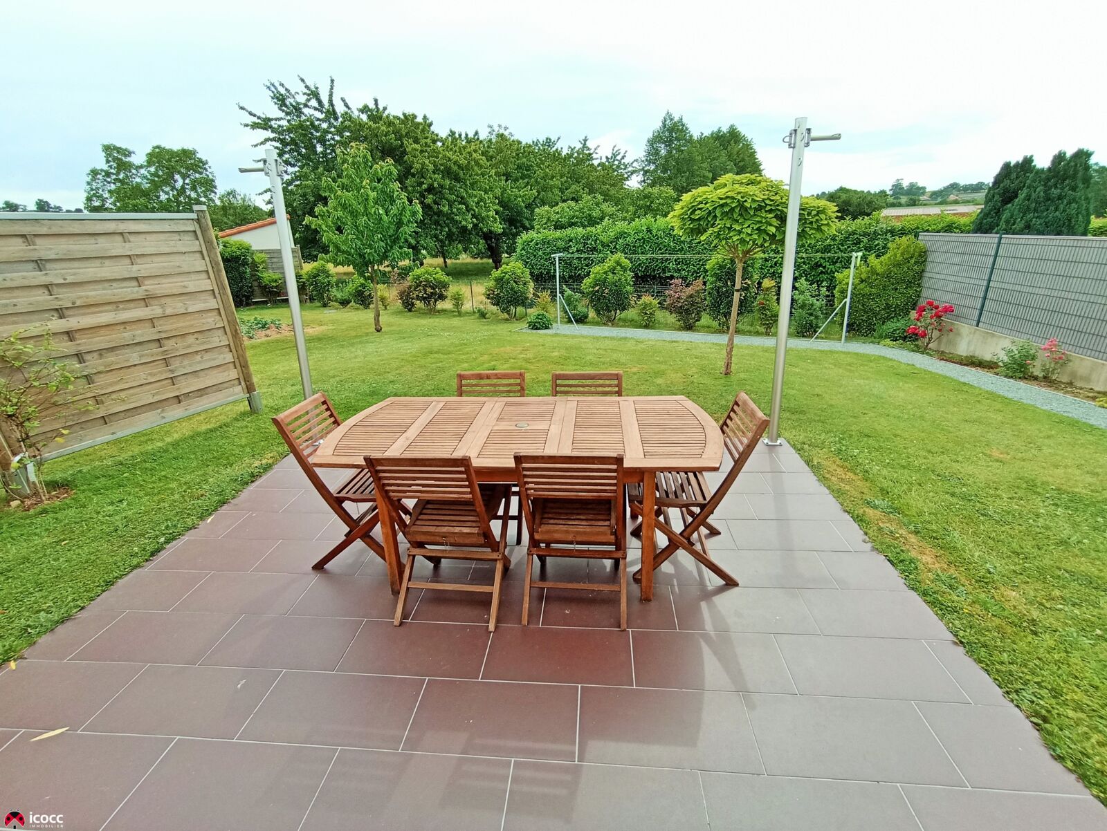 Côté extérieur, la parcelle de 674m² est très bien entretenue, sans vis-à-vis et avec la vue sur la campagne. La terrasse carrelée fait 12m² et on est accueilli par un porche de 6m².